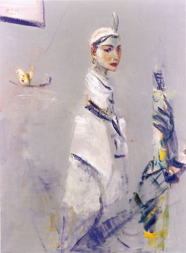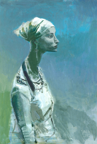 Claudia in Blau, 2002, Acryl/ Lwd.,